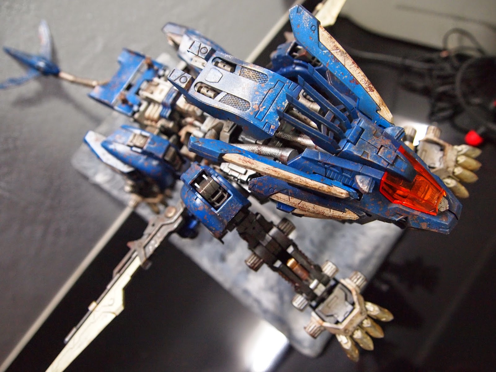 I think the weathering is overdone, that it looks a bit too dirty. Perhaps some battle damage may make it look a bit better but I just couldn't bear to damage this kit as blade liger is my favourite zoid.
